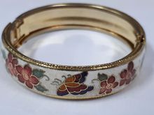 (5228) กำไลกังไสลงยาลายดอกไม้งานเก่า หนัก 46.56 กรัม กว้าง 2.5 นิ้ว ขาย 1,200-ไม่รวมส่ง