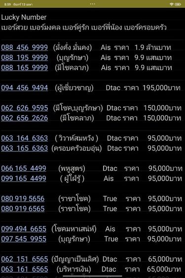 เบอร์สวย เบอร์มงคล เบอร์คู่รัก เบอร์ชุดครอบครัว