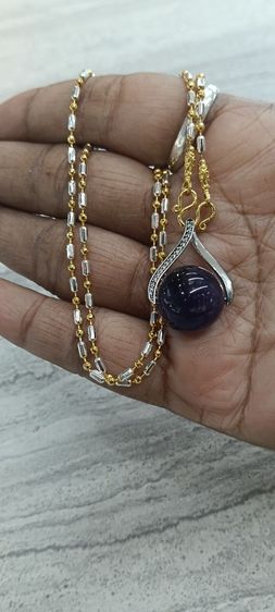 จี้หินอเมทิสแท้ 12 มิลพร้อมสร้อยคองานจิวเวอร์รี่ใส่อาบน้ำได้ยาว 18 นิ้วเหนือล่องนม