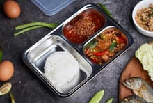 ถาดหลุม 3 หลุม พร้อมฝาปิด วัสดุสแตนเลสอย่างดี น้ำหนักเบา แข็งแรงทนทาน ฝาปิดพลาสติกใส ขนาด 17.3x4.5x24 ซม. ราคาใบละ 200 บาท รวมจัดส่ง หนักค่ะ