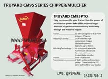 เครื่องย่อยกิ่งไม้ใบไม้ต่อพ่วงรถไถ TRUYARDรุ่น CM95 PTO