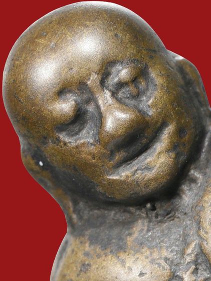 รูปเหมือน ลพ.เงิน วัดบางคลาน พิมพ์นิยม องค์เล็ก เนื้อทองผสม ผิวสองสี ออกสีแดงเข้ม ผิวแห้ง รอยตัดเดือยใหญ่ ฐานบาง ขนาดเล็ก รอยตะไบเกือบทั้งอง