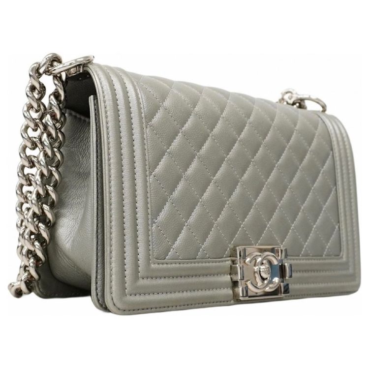 Chanel Boy Bag สีเงิน (hardware เงิน) ซีรีส์ Hologram 24 มือสอง อปกครบค่ะ สวยมาก ใช้งานง่ายค่ะ นัดดูสินค้าได้ค่ะ boy 8 ✅ หนัง CAVIAR