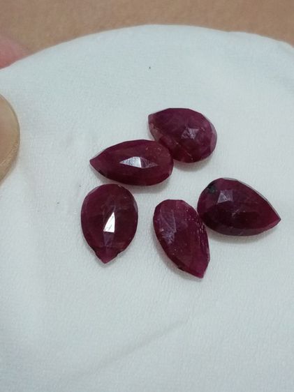 พลอยทับทิมแท้ เจียระไนเหลียมทรงหยดน้ำ รวม 5 เม็ด เม็ดขนาด ยาว 12มิล