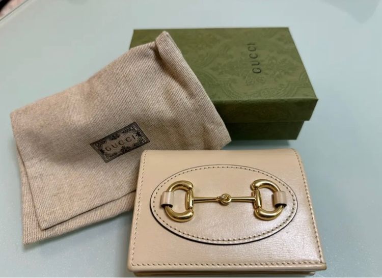 GUCCI HORSEBIT 1955 CARD CASE WALLET Beige leatherOpen: W11cm x H17.5cmClosed: W11cm x H8.5cm x D3cmMade in ItalyDETAILS Online since:2024-07-19Categories :WomenCategory:AccessoriesSub-category:WalletsDesigner:GucciModel:Horsebit 1955Condition:Good conditionMore infoMaterial:LeatherColour:BeigeReference: one time used, like new MeasurementsWidth:4.3 inHeight:3.3 inอ่านเพิ่มเติม
