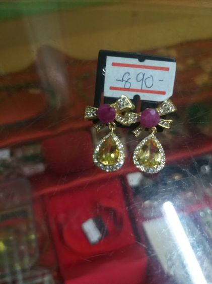 ต่างหูเงินแท้ ทับทิมซิทรินแท้ชุบทอง18k