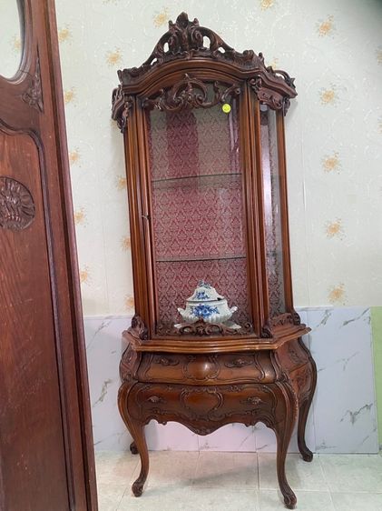 ตู้โชว์ สไตล์บาร็อค สีไม้วอลนัท งานยุโรปมาจากเยอรมนี